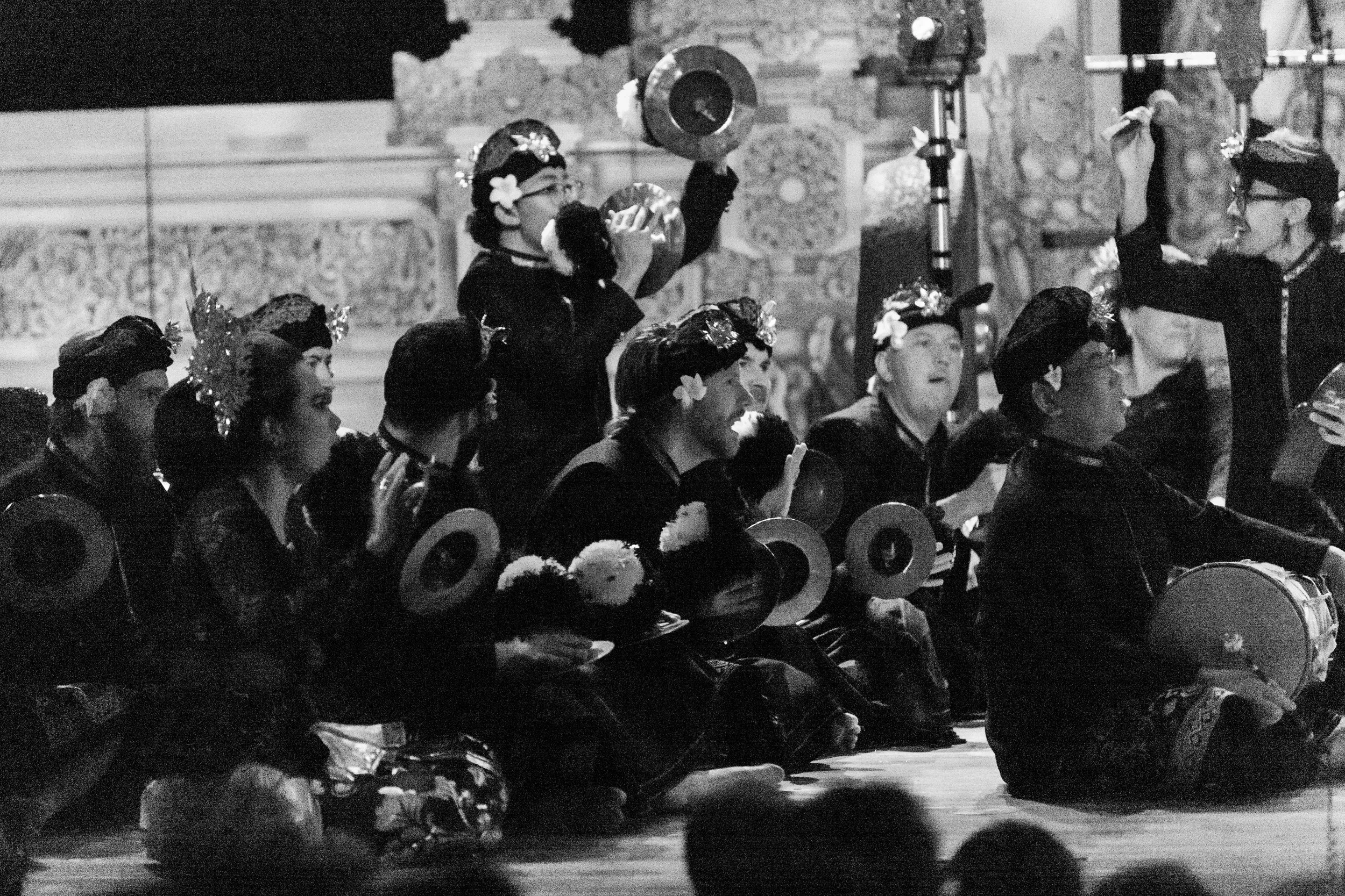 Baleganjur is an ensemble of many cymbals (ceng-ceng kopyak), played with drums and gongs, traditionally used for processionals. The processionals were originally used to create havoc in the villages to chase away evil spirits.