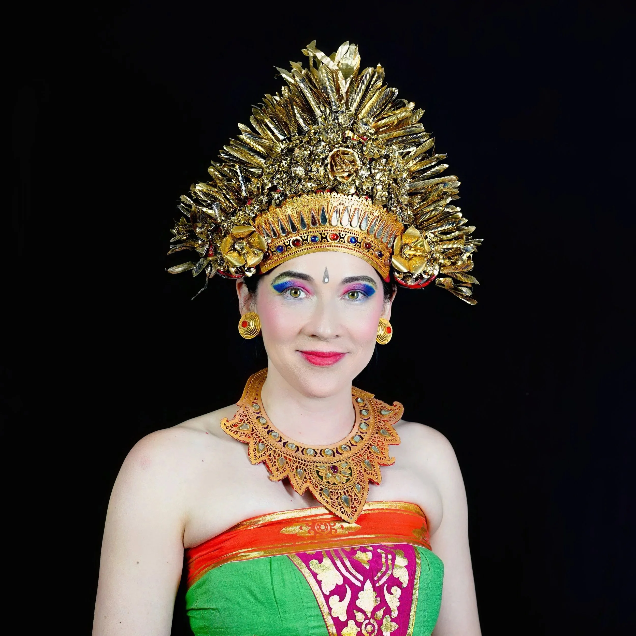 Vie began dancing with Ibu Ketut Marni while she was a student at Colorado College. After graduating, she has continued to study and perform with Gamelan Tunas Mekar.